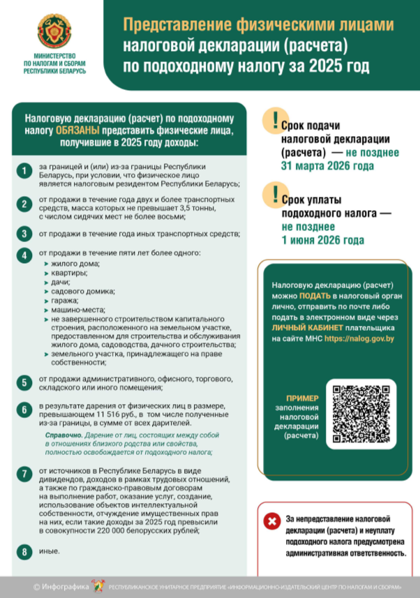 Представление физическими лицами налоговой декларации (расчета) по подоходному налогу за 2025 год