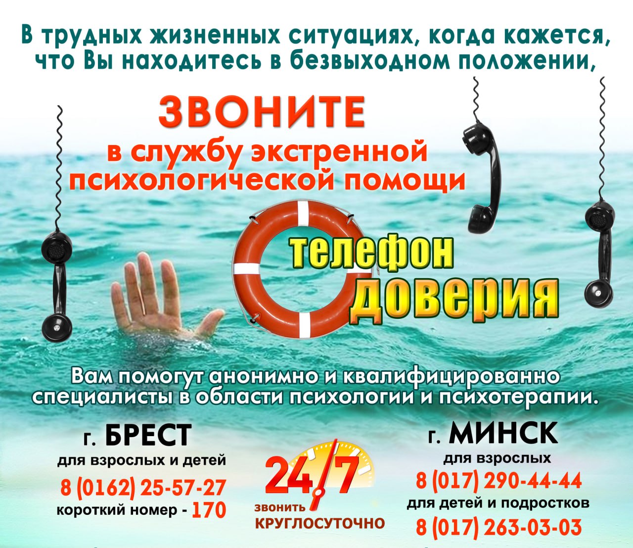 Телефон доверия службы экстренной психологической помощи